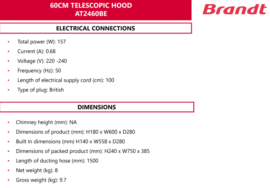 Brandt BRANDT AT2460BE 60CM BLACK STAINLESS STEEL ELECTRONIC TOUCH CONTROL TELESCOPIC HOOD SKU: AT2460BE S$699.00 S$420.00 Quantity 12345678 Descriptions If you have any questions, do feel free to drop us a text on WhatsApp or you contact us here 😊 You may also like EF EF TF 5293 90CM TELESCOPIC HOOD S$329.00 S$289.00 Brandt BRANDT AT2490BE 90CM BLACK TOUCH CONTROL TELESCOPIC HOOD S$749.00 S$460.00 Brandt BRANDT AT1490X BUILT-IN STAINLESS STEEL EXTRACTOR HOOD S$499.00 S$399.00 EF EF EFCH 9401 HM SS 90CM TELESCOPIC HOOD S$329.00 S$289.00