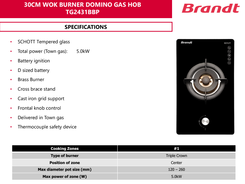 Brandt BRANDT TG2431B 30CM 1 BURNER BUILT-IN GLASS GAS HOB SKU: TG2431B S$669.00 S$450.00 Quantity 12345678 Descriptions If you have any questions, do feel free to drop us a text on WhatsApp or you contact us here 😊 You may also like Fujioh FUJIOH FH-GS6530 SVSS 3 BURNER STAINLESS STEEL GAS HOB WITH SAFETY DEVICE S$599.00 S$538.00 Fujioh FUJIOH FH-GS7030 SVGL 3 BURNER DOUBLE INNER FLAME BUILT-IN GLASS GAS HOB S$688.00 S$658.00 Rinnai RINNAI RB-93TG 3 BURNER HYPER FLAME GLASS HOB WITH SAFETY DEVICE S$710.00 S$638.00 Brandt BRANDT TG9905B 78CM 3 BURNER BUILT-IN GLASS GAS HOB S$949.00 S$645.00