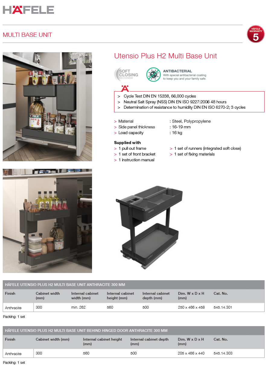 Hafele HAFELE UTENSIO PLUS H2 30CM ANTHRACITE MULTI BASE CABINET STORAGE UNIT SKU: 545.14.301 S$349.00 S$299.00 Type * Pull Out DrawerBehind Hinged Door Quantity 12345678 Descriptions If you have any questions, do feel free to drop us a text on WhatsApp or you contact us here 😊 You may also like Hafele HAFELE UTENSIO PLUS H2 30 / 40CM TALL LARDER KITCHEN STORAGE UNIT S$869.00 S$839.00 Hafele HAFELE UTENSIO PLUS H2 15 / 20 / 30 / 40CM ANTHRACITE BASE CABINET STORAGE UNIT S$229.00 S$199.00