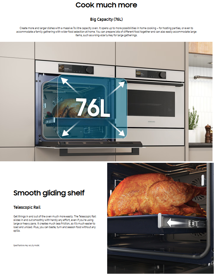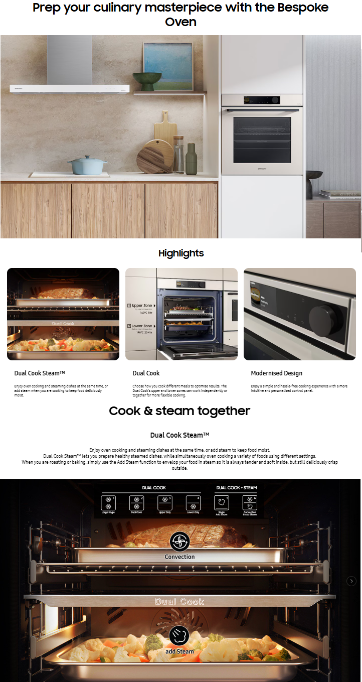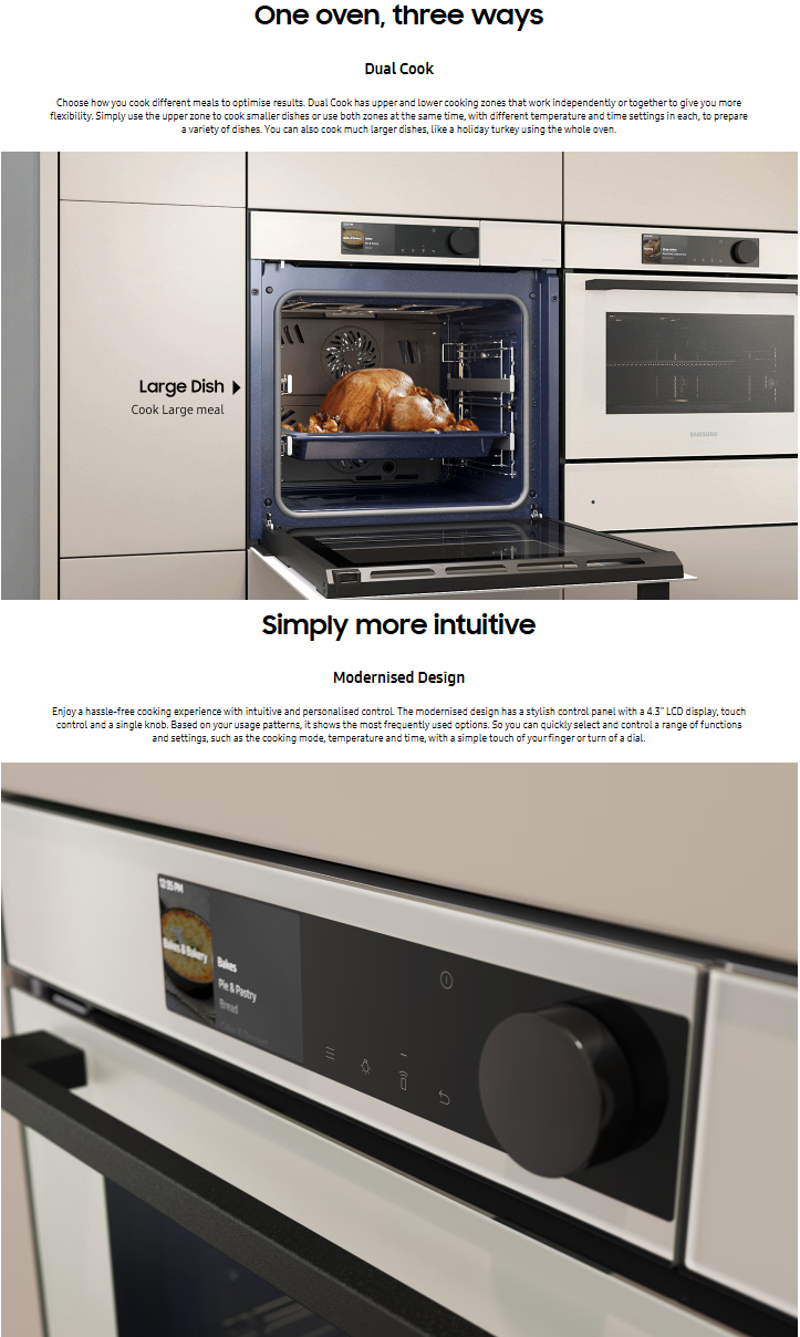 SAMSUNG NV7B6675CAA/SP 76L SATIN BEIGE DUAL COOK STEAM™ BESPOKE BUILT-IN OVEN