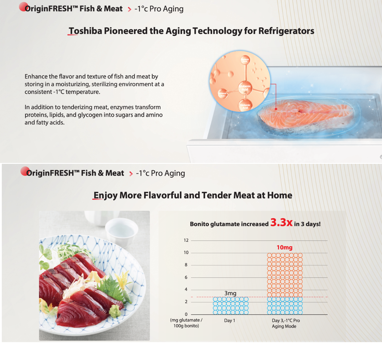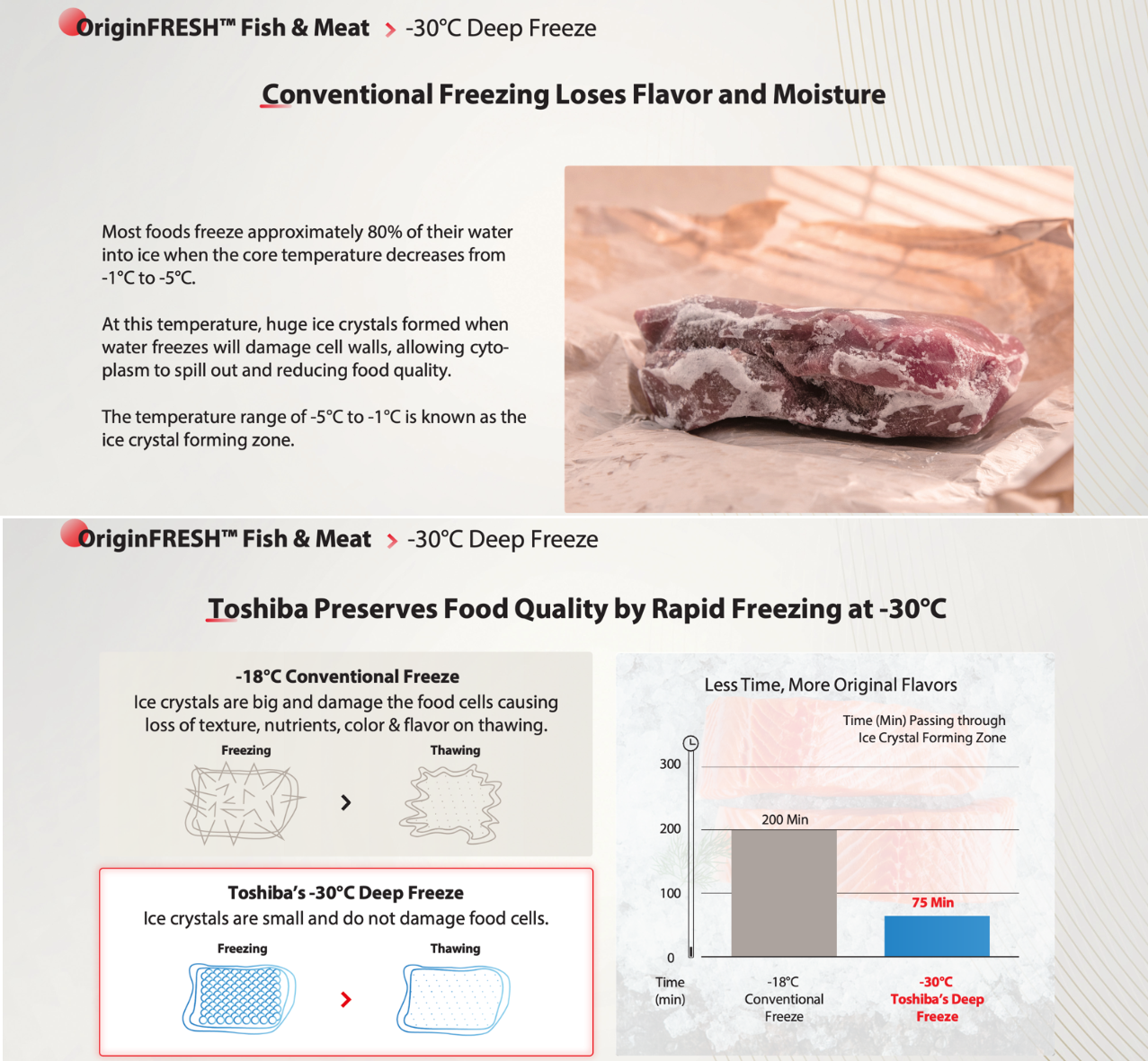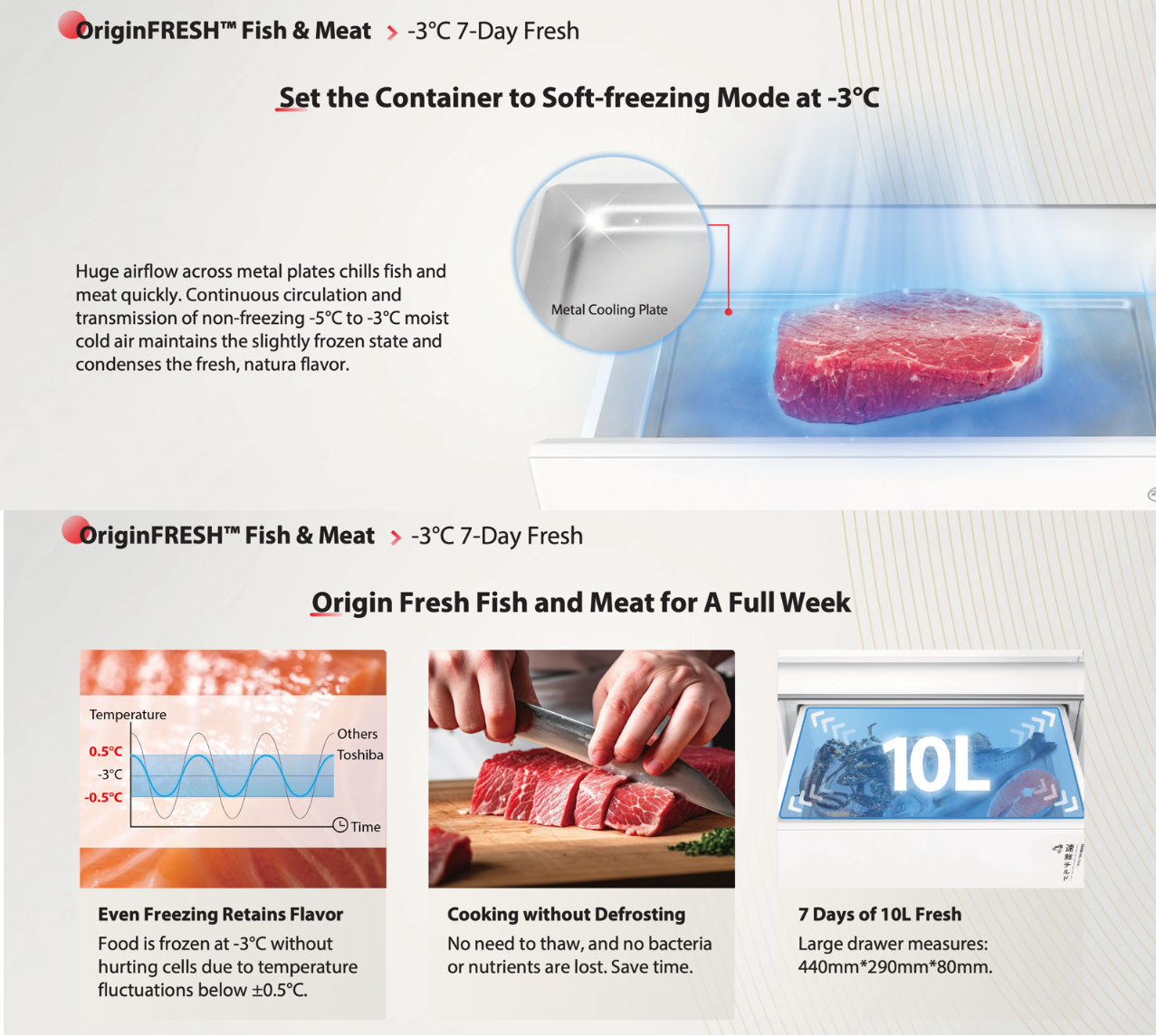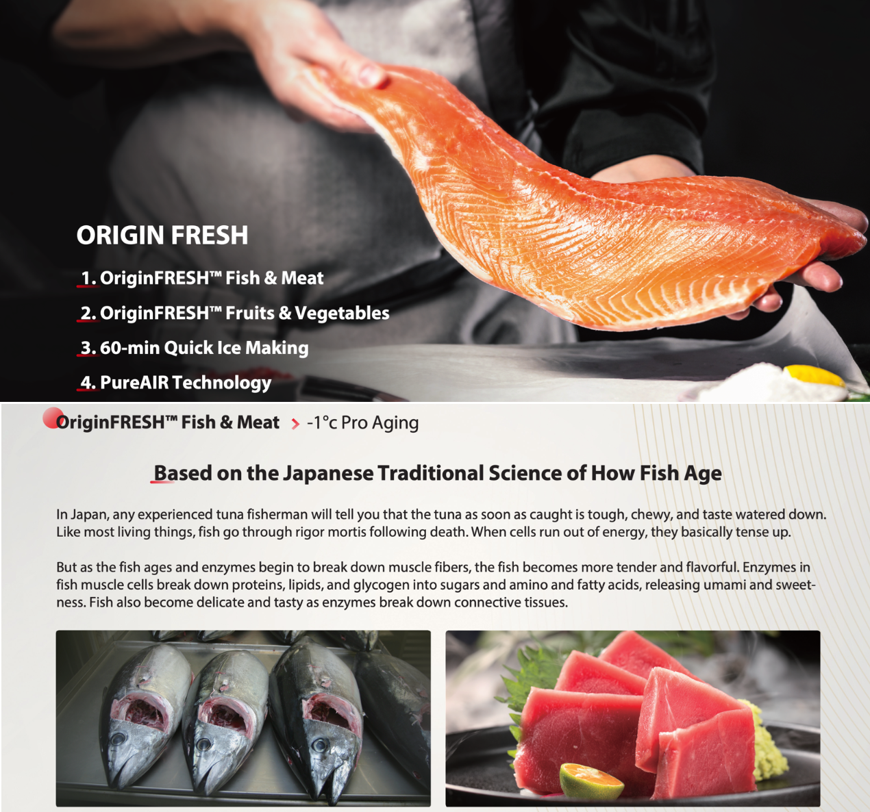 OriginFRESH™ Fish & Meat: -1°C Pro Aging / -3°C 7-Day Fresh / -30°C Deep Freeze