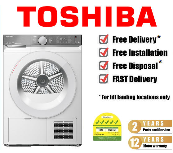 TOSHIBA TD-BK100GHS(WW) WHITE 9KG SMART FRONT LOAD HEAT PUMP DRYER