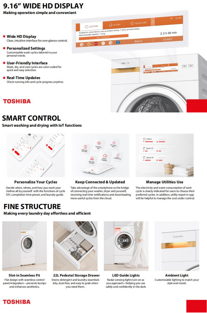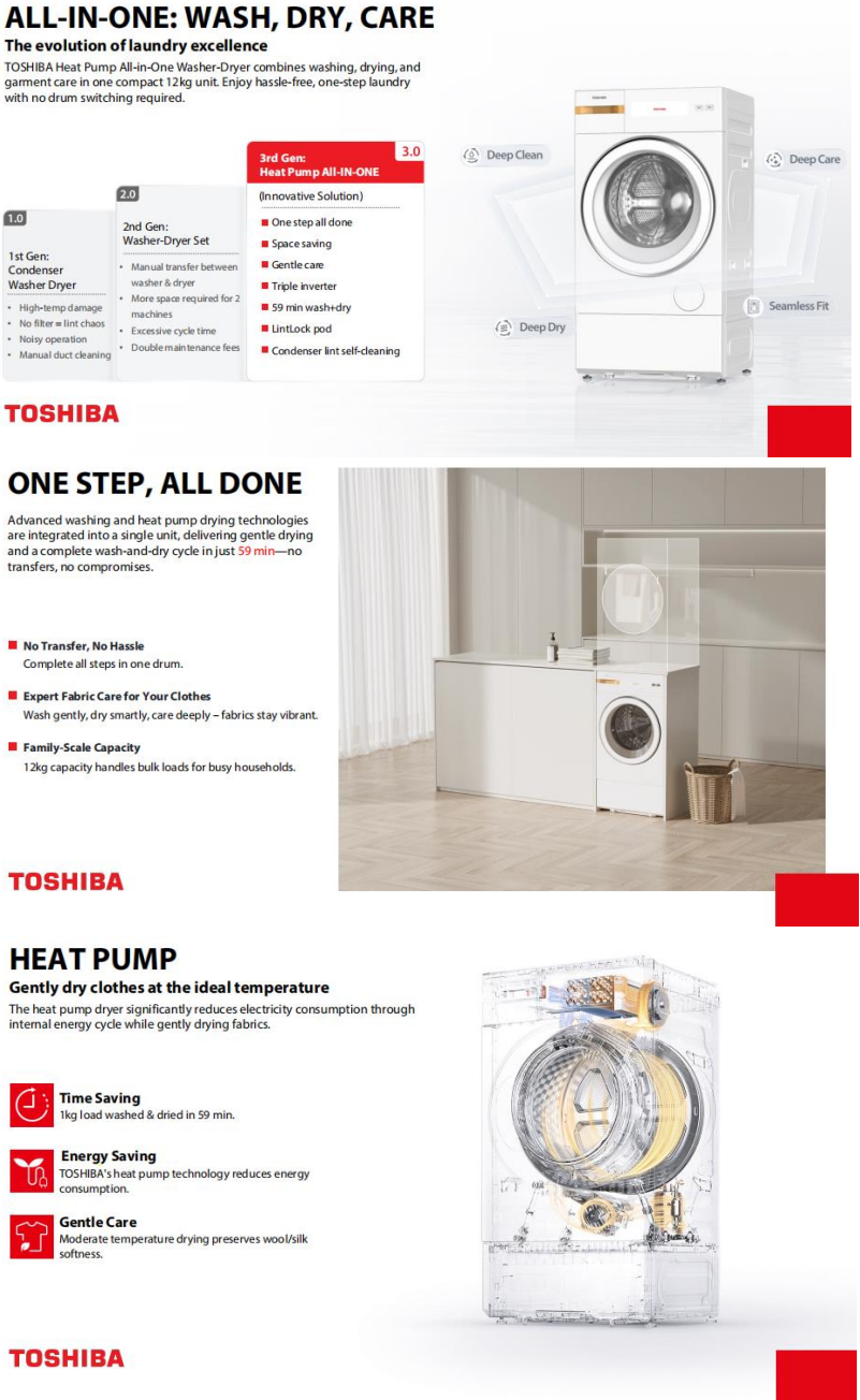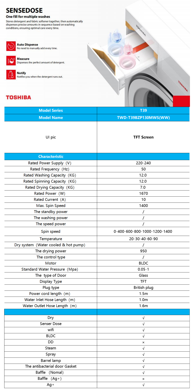Toshiba TOSHIBA TWD-T39BZP130MWS(WW) 12/7KG SMART CONTROL TRIPLE INVERTER HEAT PUMP DRYING 2 IN 1 WASHER CUM DRYER SKU: TWD-T39BZP130MWS(WW) S$3,599.00 S$3,229.00 Quantity 12345678 Descriptions If you have any questions, do feel free to drop us a text on WhatsApp or you contact us here 😊 You may also like Toshiba TOSHIBA TWD-T21BU140UWS(MG) 13/8KG DARK GREY FRONT LOAD 2 IN 1 WASHER CUM DRYER S$1,599.00 S$1,419.00 Whirlpool WHIRLPOOL WWEB8502GW 8/5KG SANICARE FRONT LOAD 2 IN 1 WASHER CUM DRYER S$999.00 S$877.00 Toshiba TOSHIBA TWD-T40BZU110MWS(WT) 10/8KG SMART HEAT PUMP 2 IN 1 WASHER CUM DRYER S$2,999.00 S$2,719.00 Whirlpool WHIRLPOOL WWEB11702GG 11/7KG SANICARE INVERTER 2 IN 1 WASHER CUM DRYER S$1,599.00 S$1,371.00
